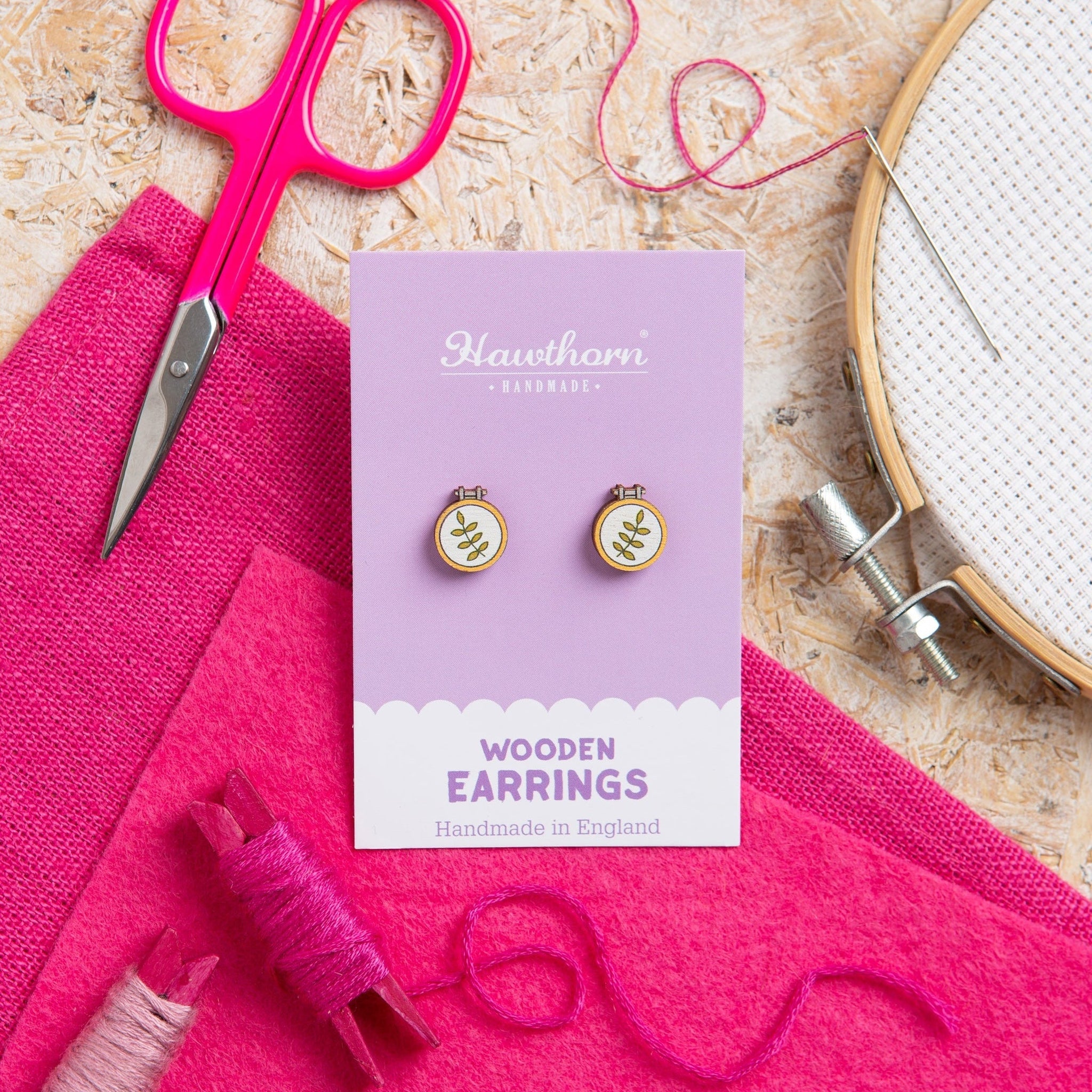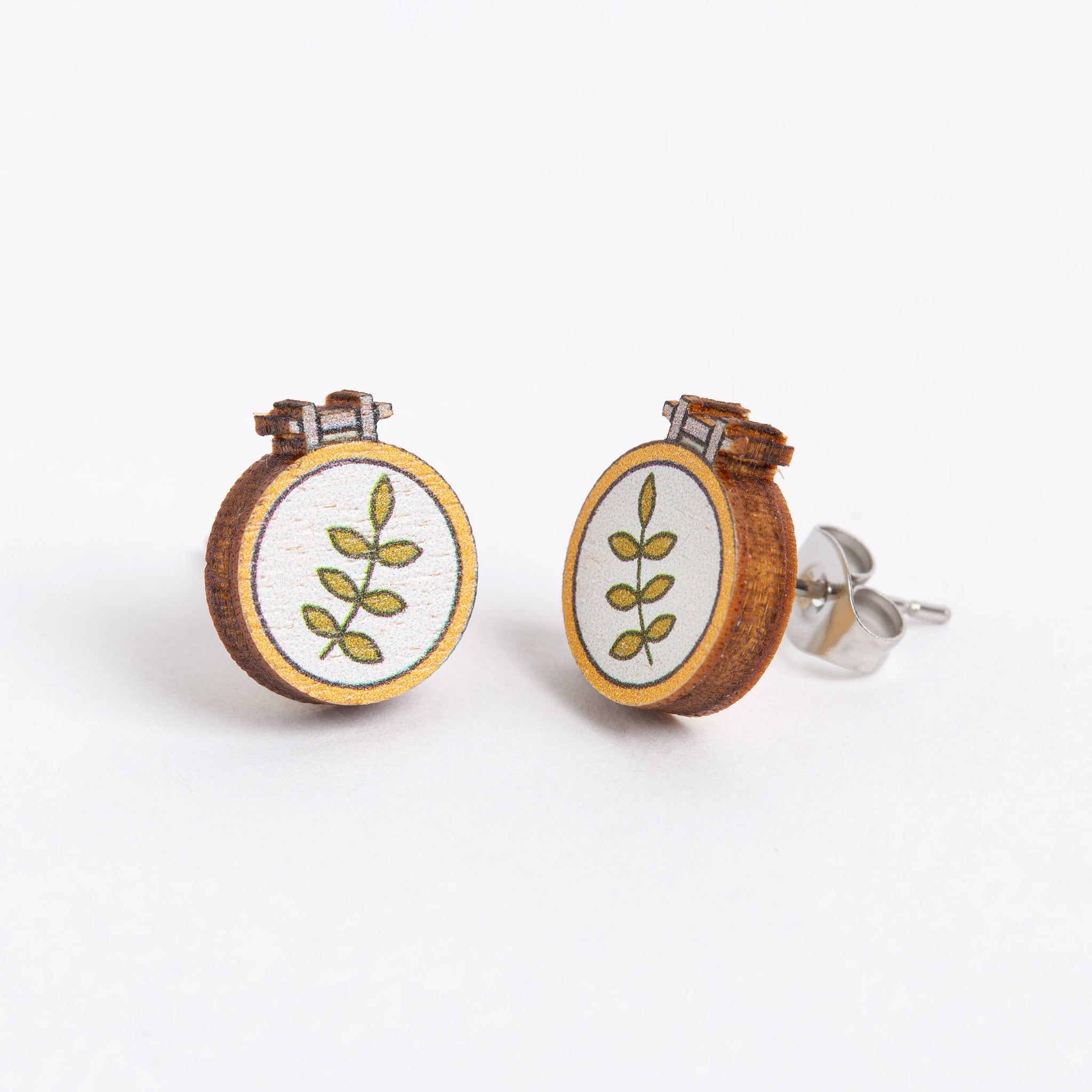 Show off your crafty side with our beautiful Embroidery Hoop wooden stud earrings!
