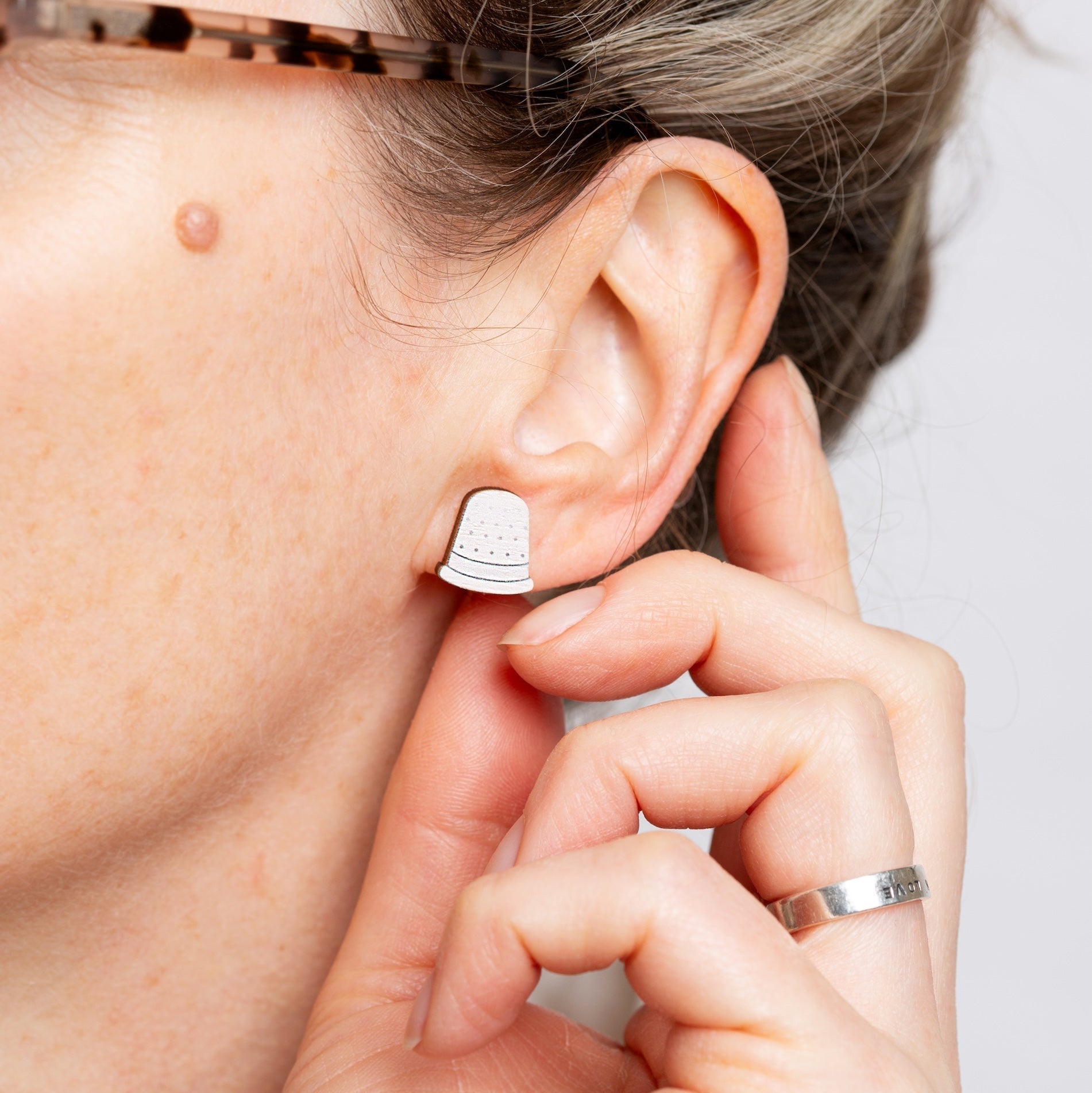 Show off your crafty side with our charming Thimble wooden stud earrings!
