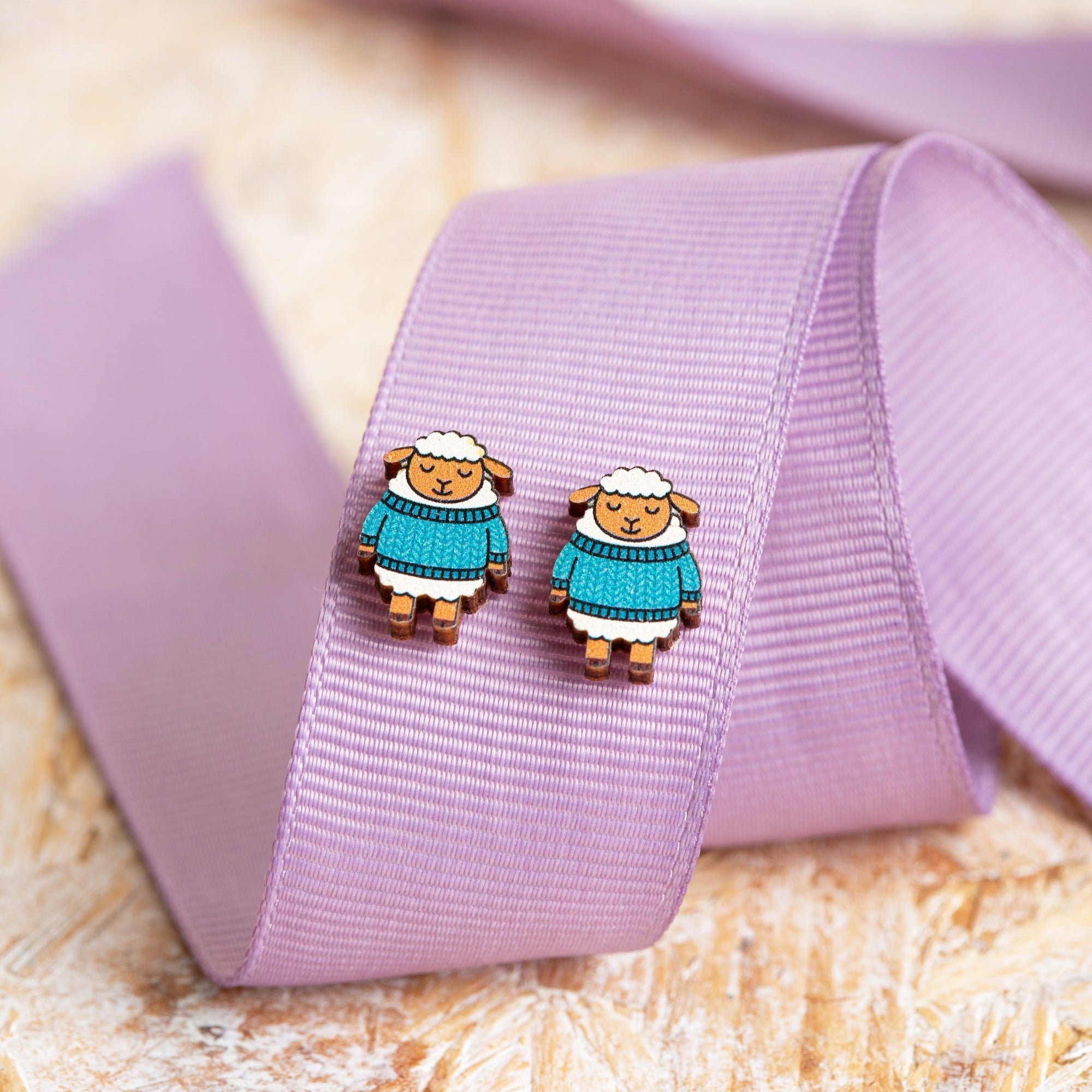 Handmade in the UK, each stud is laser-cut from lightweight, FSC-certified birch plywood and features a detailed UV-printed Sheep in a Woolly Sweater design. Fitted with hypoallergenic stainless steel posts and butterfly backs, they’re a comfortable even for sensitive ears.
